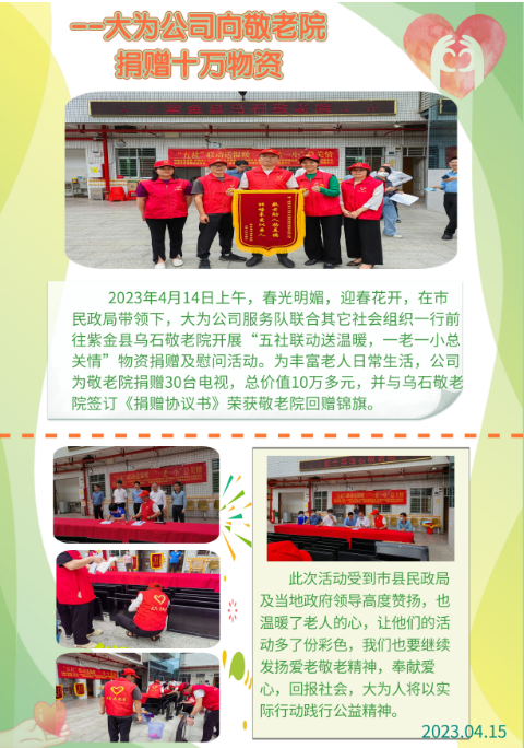 • 大為公司向敬老院捐贈十萬物資